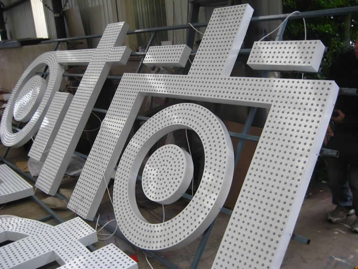 外露發(fā)光字燈之間的距離大,或者是少,會(huì)影響排列燈的數(shù)量,燈具與安裝的高度,以及字體的大小有關(guān),像樓頂上的5-6米的字,沖孔的距離就是在3mm左右,像門頭上的小字,一般的沖孔距離是2.5cm,沖孔的距離在沖孔軟件里面自動(dòng)的生成。有些筆畫可能看著少了一點(diǎn)點(diǎn),有些是會(huì)密度高了一點(diǎn),不過間距都是不變的。每一個(gè)平方字都是有幾百個(gè)孔,人工排孔的話工作強(qiáng)度太大了,都是電腦軟件自動(dòng)的打孔。像有些是幾百平方的發(fā)光字,打孔的數(shù)量都是在幾萬個(gè),排列孔,以及打孔都是需要電腦控制,機(jī)器操作,這樣才能夠沒有失誤。